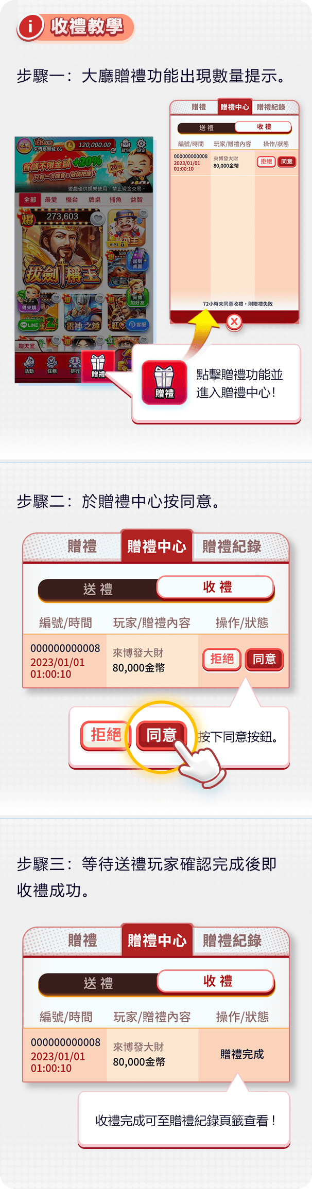 ※若72小時未同意收禮,則贈禮失敗※